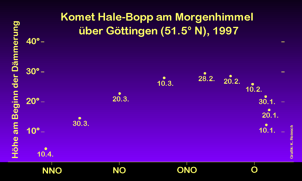 Aus der folgenden Abbildung kann man ablesen, zu welchen Zeiten der Komet
