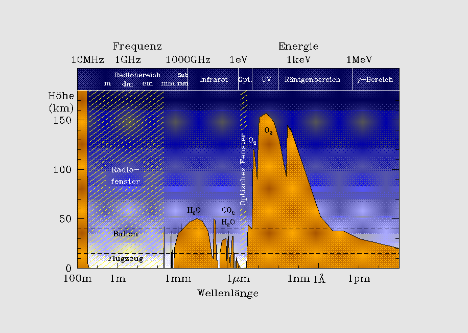 Um die Physik astronomischer Objekte verstehen zu können, benötigt man Beobachtungen über den gesamten Bereich des elektromagnetischen Spektrums. Allerdings ist vom Erdboden aus neben dem optischen Bereich (Wellenlänge 400 bis 700 nm) nur der Radiobereich (einige Zentimeter bis einige Meter) zugänglich, Strahlung aus allen anderen Bereiche wird von der Erdatmosphäre absorbiert und gelangt nicht bis auf den Erdboden.